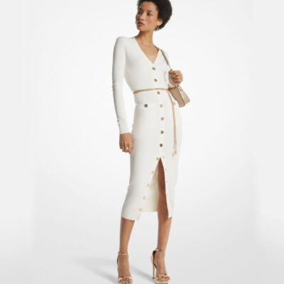Enchanting Midi White Chambray Dress